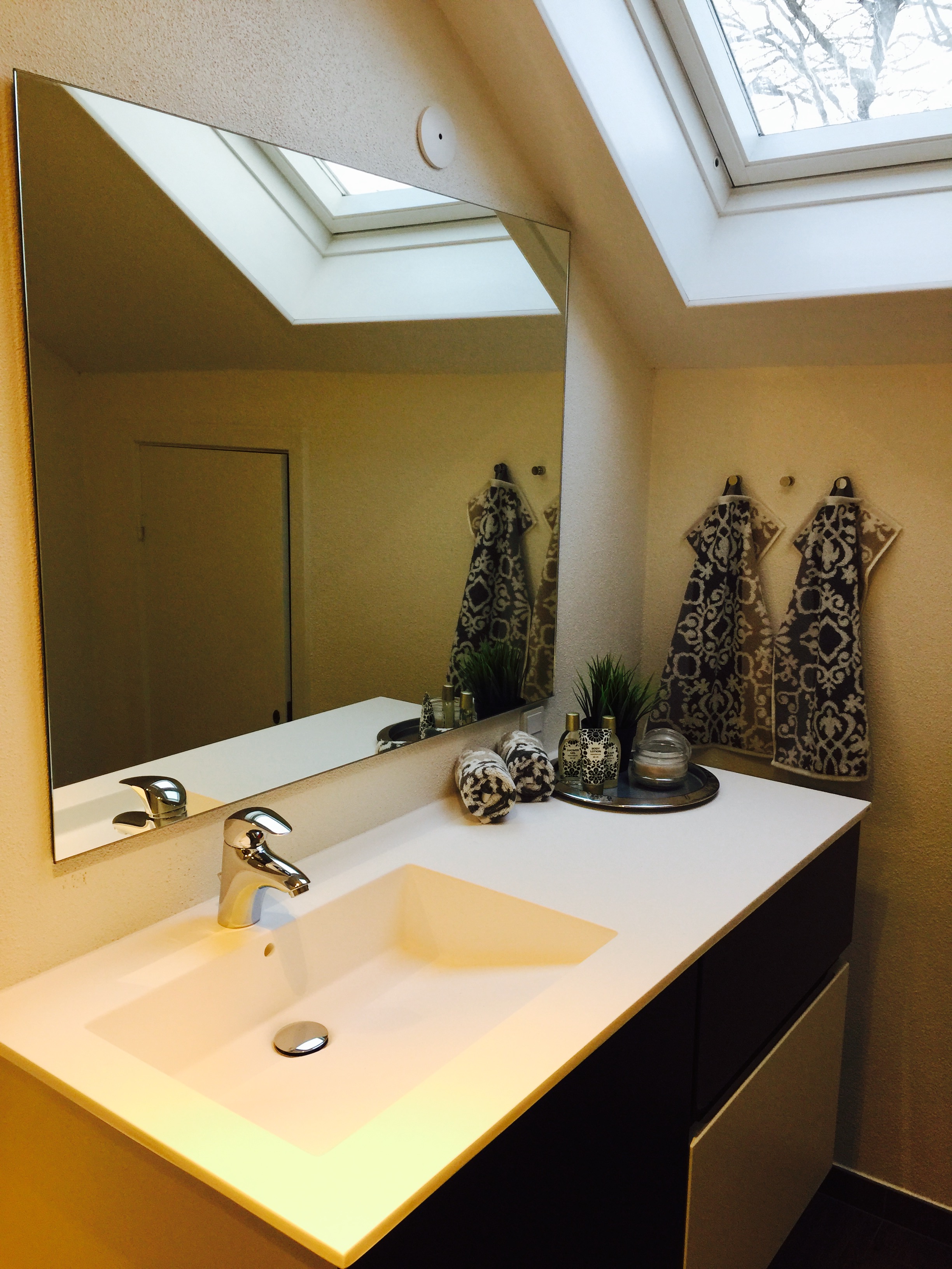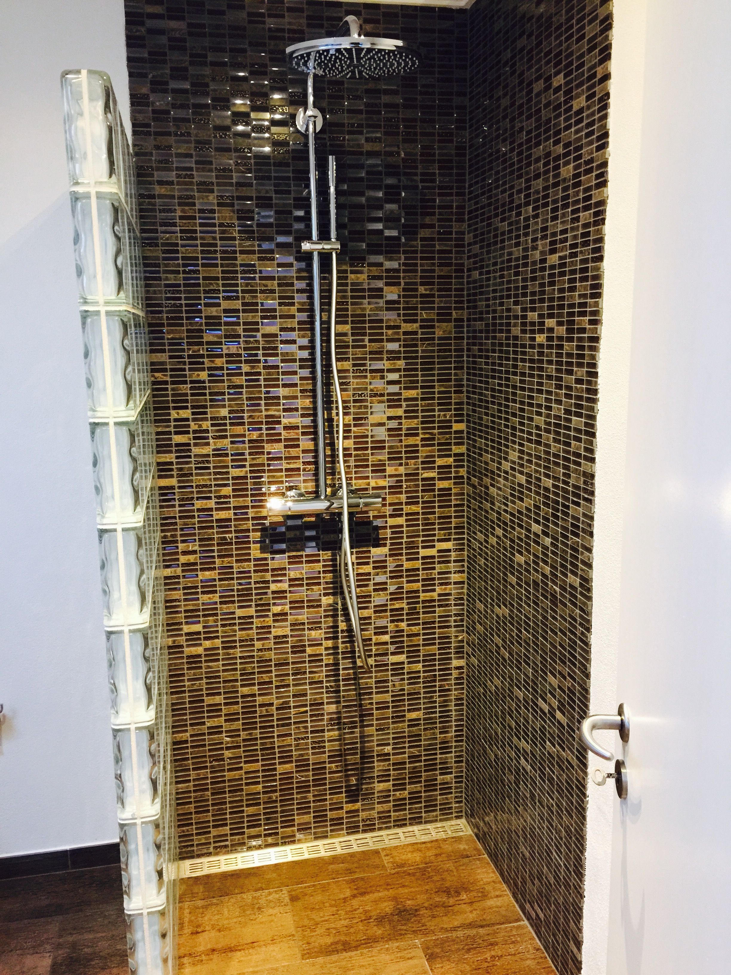 Lejligheden er indrettet med stort og lækkert badeværelse med brus og vaske søjle.